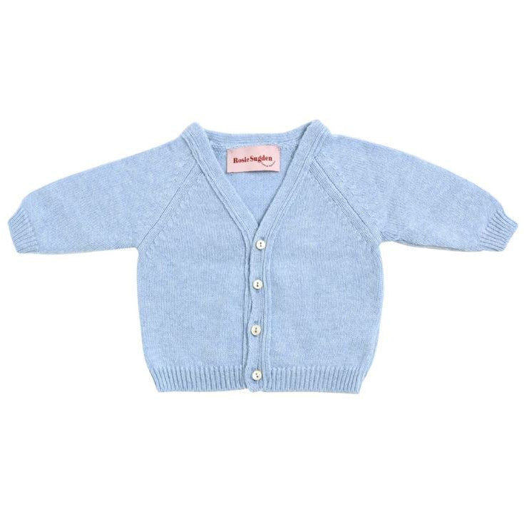 Looking for a luxury baby gift. Our adorable cashmere baby cardigan in blue and is crafted from 100% 3-ply cashmere in a family-run mill in the Scottish Borders. Wonderfully soft against delicate skin and perfect for keeping little ones cosy, it features a classic v-neck, ribbed cuffs and pearlescent buttons for a sweet finishing touch.