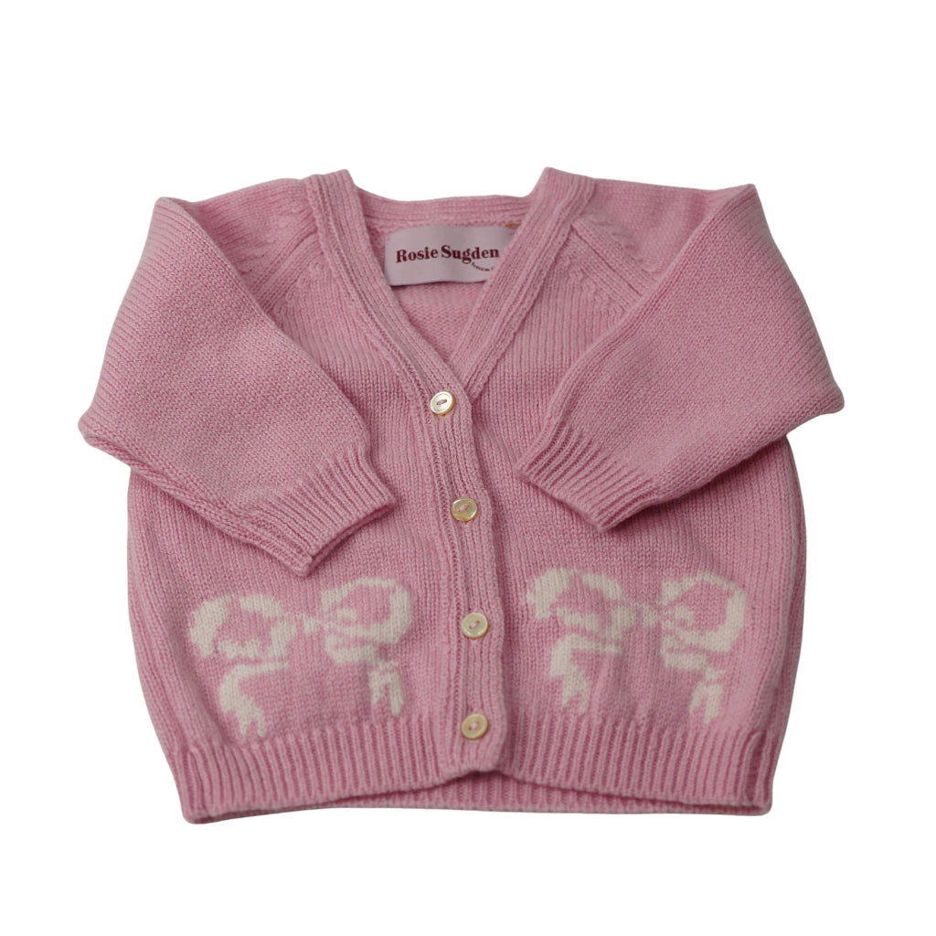 Baby Cashmere Cardigan Pink With Bow Motif